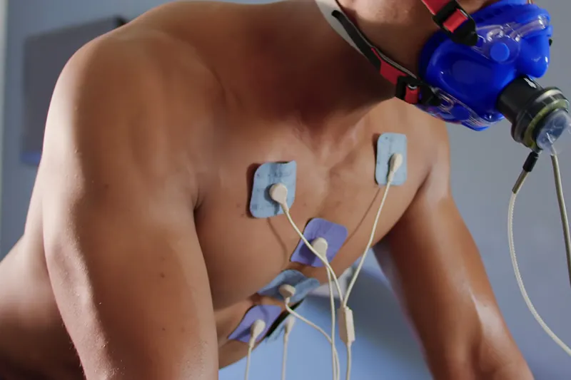 Evalúa la respuesta cardiovascular y metabólica del ciclista durante el ejercicio, determinando umbrales y capacidades aeróbicas y anaeróbicas.